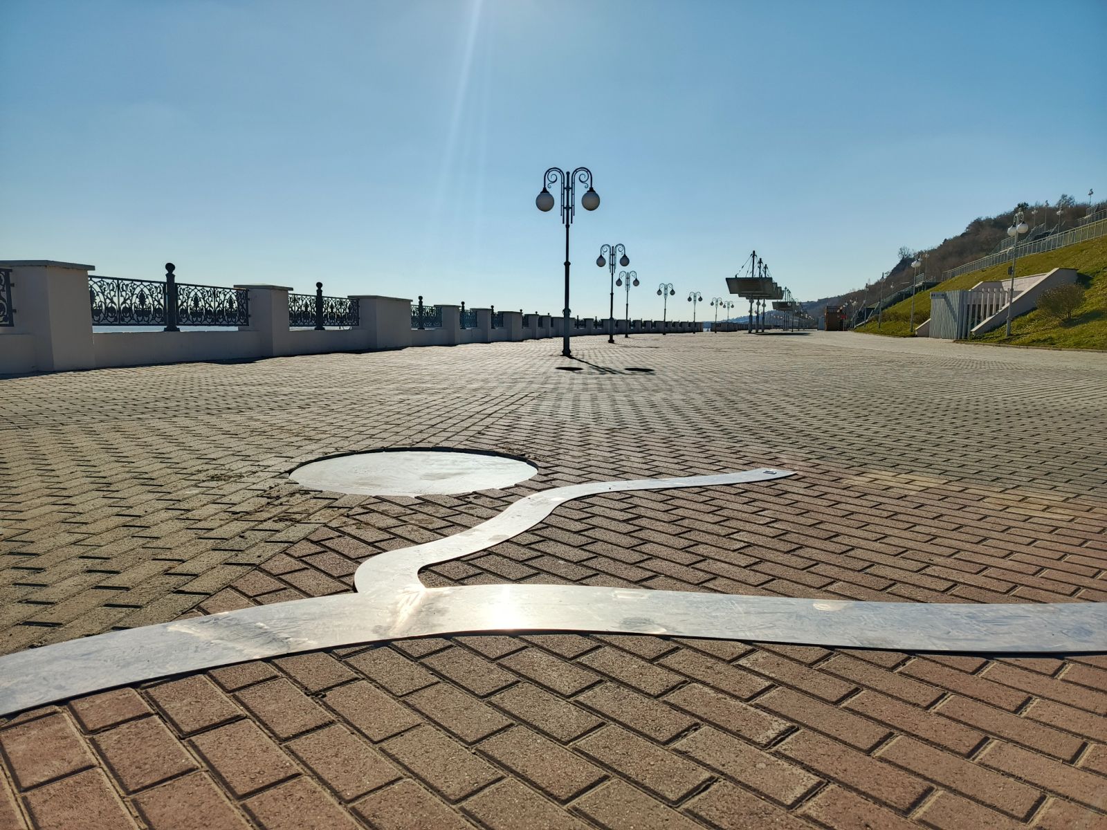 Арт-объект, символизирующий Обь, уже смонтировали. Вдоль него в брусчатке рабочие выполнили специальные отверстия для монтажа бронзовых барельефов сибирских городов, которые стоят на реке. Они могут появиться до конца октября.