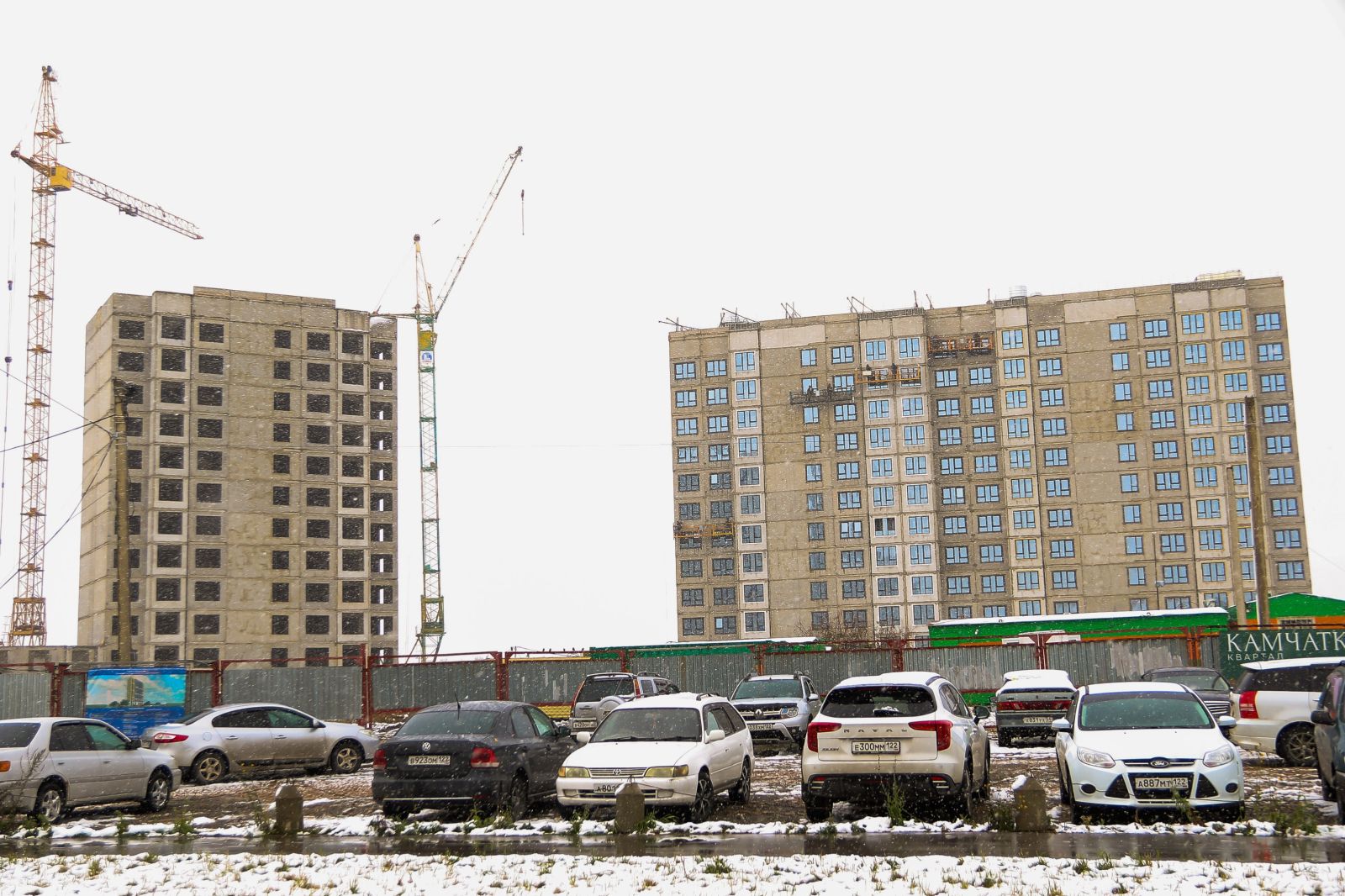 Стройка расположена на улице Власихинской, 212. Работы на площадке стартовали в феврале этого года. Тогда огороженный участок все еще походил на пустырь, коим он и являлся много лет до проведения одного из самых дорогих земельных аукционов. Спустя почти восемь месяцев здесь уже высятся корпуса будущих многоэтажек.