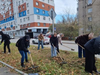 В Железнодорожном районе ТОС Петровского микрорайона провел масштабный субботник. Активисты и местные жители убрали опавшую листву с тренажерных и детских площадок, а также с места проведения массовых мероприятий на аллее Георгия Исакова. Всего собрали более 80 мешков мусора.