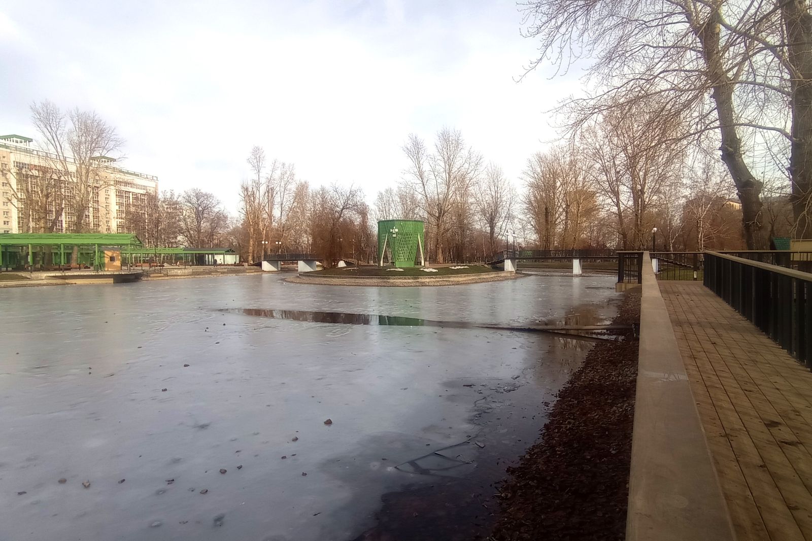 Ранее на пруду в парке заметили детей, которые играли на тонком льду. На замечания они якобы лишь грубили.