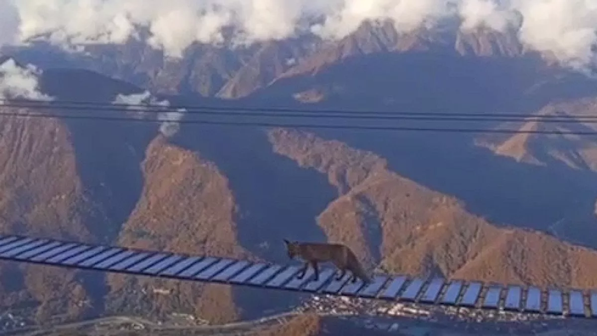 Лисица медленно прогулялась по мосту, где туристы обычно ходят со страховкой. При этом своего страха она не показала и спокойно дошла до конца моста