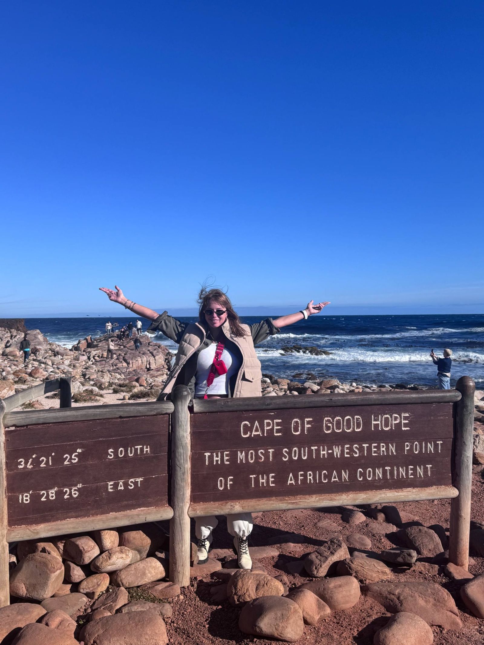 Модель побывала не только на местной ферме жирафов, мысе Доброй Надежды но и "на краю света". Она отметила, что на берегу Кейптауна можно заметить плавающих в океане морских котиков, а с Антарктиды до Африки дует сильный ветер. В связи с этим она анонсировала свою поездку на Южный полюс, которая состоится через четыре месяца.
