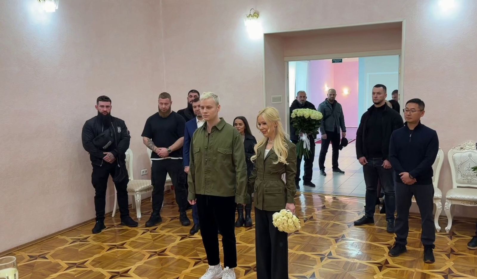 Церемония прошла скромно и без лишних гостей, пара выбрала для этого стиль милитари. Мероприятие посетил глава ДНР Денис Пушилин.