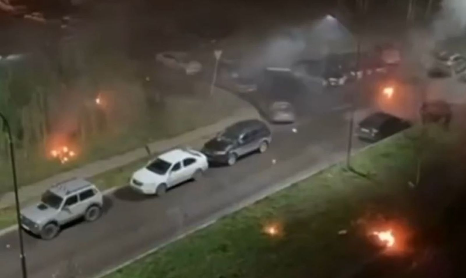 Обломки упали на парковку у жилых домов, повредив сразу несколько машин. Пострадавших в результате падения сбитого беспилотника нет