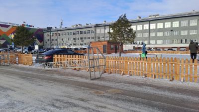В Барнауле началась подготовка площадки для заливки катка на уличной парковке ТРЦ Galaxy, сообщил корреспондент "Толка".
