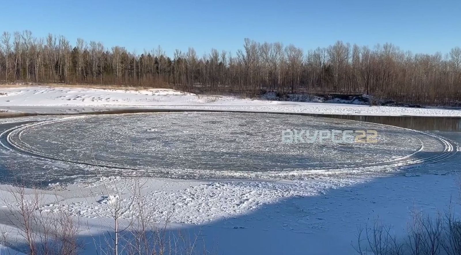 В Алтайском крае запечатлели на видео "чудо света" – на реке Чумыш крутится ровная ледяная "тарелка". Кадры опубликованы в telegram-канале "В курсе 22".