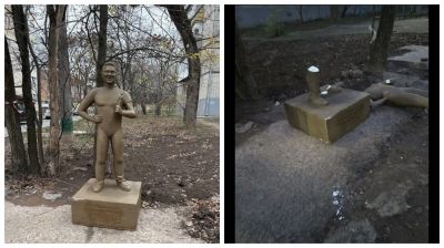 На следующий день после появления скульптуры жители заметили тревожное зрелище: фигура актера лежала у подножия постамента, а вместо торжественно возвышающегося силуэта остались лишь одиноко стоящие ботинки.
