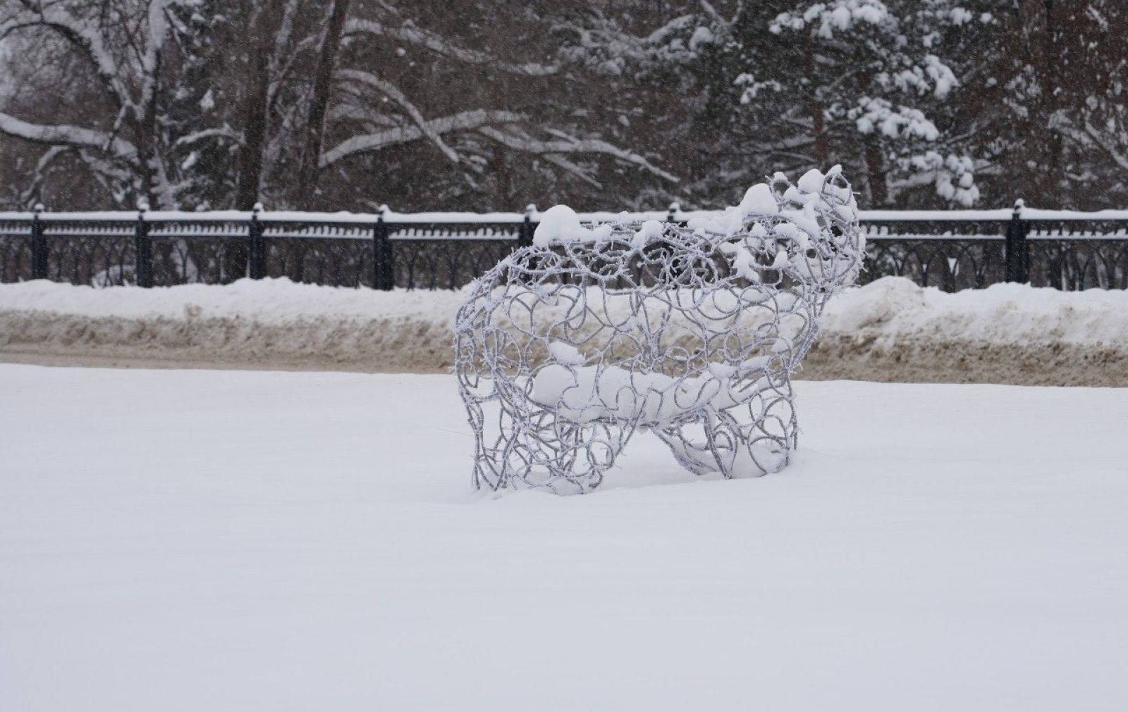 Главный зимний городок в Бийске уже украшен световыми гирляндами и фигурами. 8 декабря специалисты смонтировали еще два светящихся арт-объекта - медведя и новогодний шар