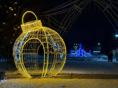В вечернее время уже сияют световой потолок в парке Гаркавого, новые арт-объекты у музея Чуйского тракта: на гостевом маршруте появились три светящихся дерева и медведь, а также новогодний шар на Петровском бульваре.