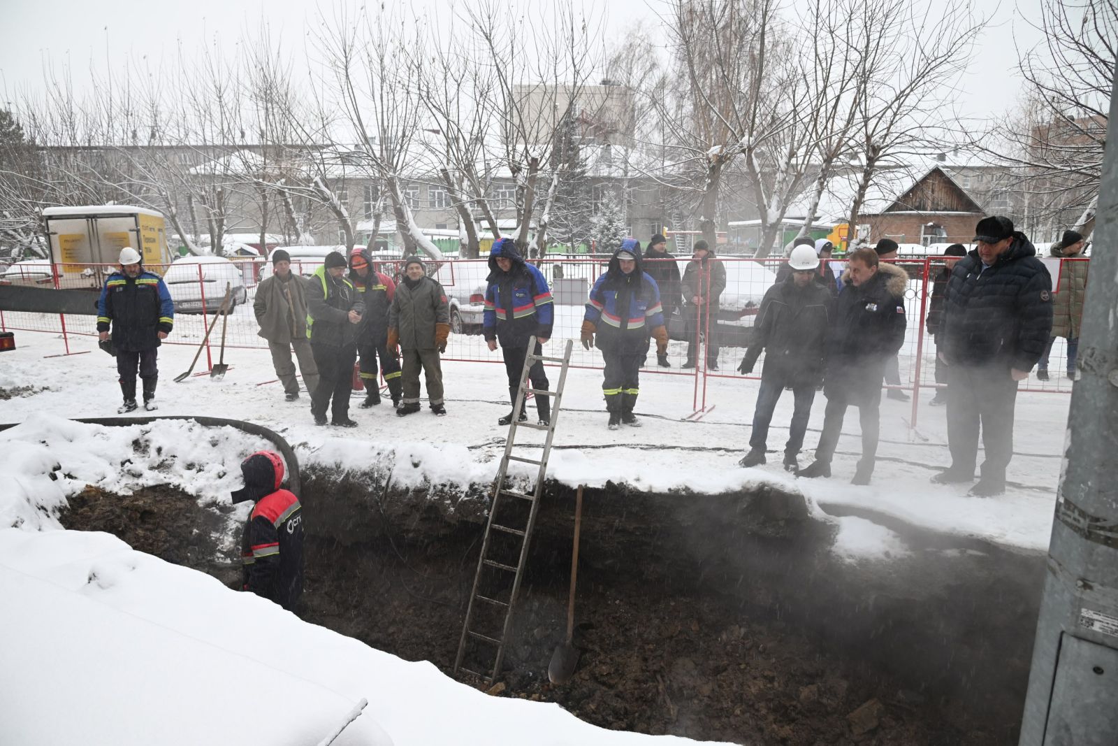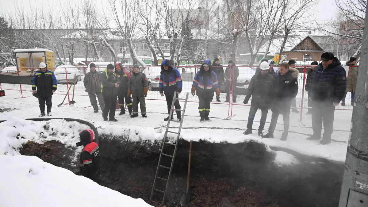 Глава Барнаула Франк провел выездное совещание на месте работ. Повреждение выявили еще 3 декабря, но специалисты ждали потепления для ремонта