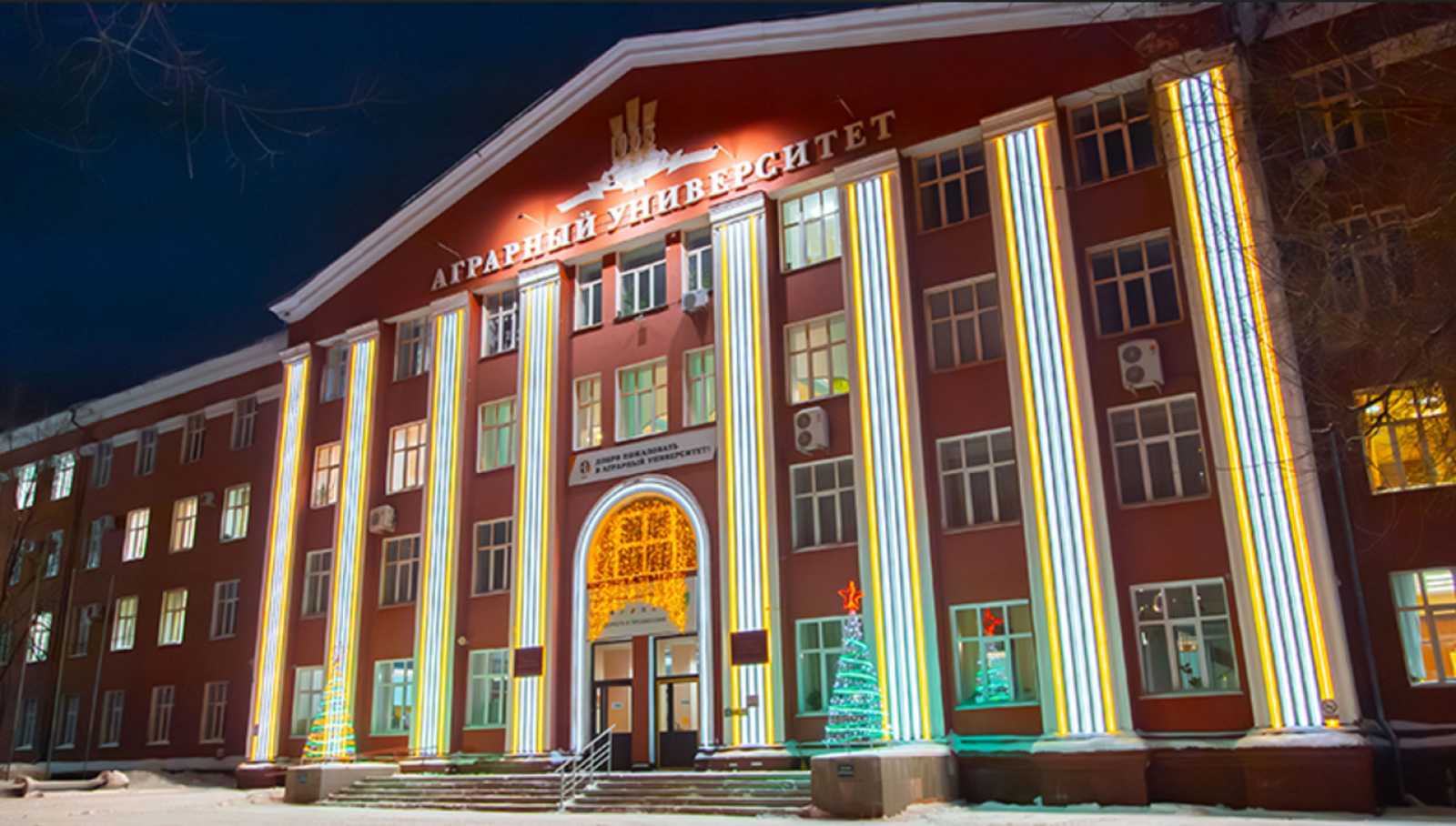 Алтайский государственный аграрный университет преобразился гирляндами и световыми конструкциями. Как сообщает пресс-служба правительства в Алтайском крае, для новогодней подсветки зданий вуза использовали более 1 км светодиодной ленты.