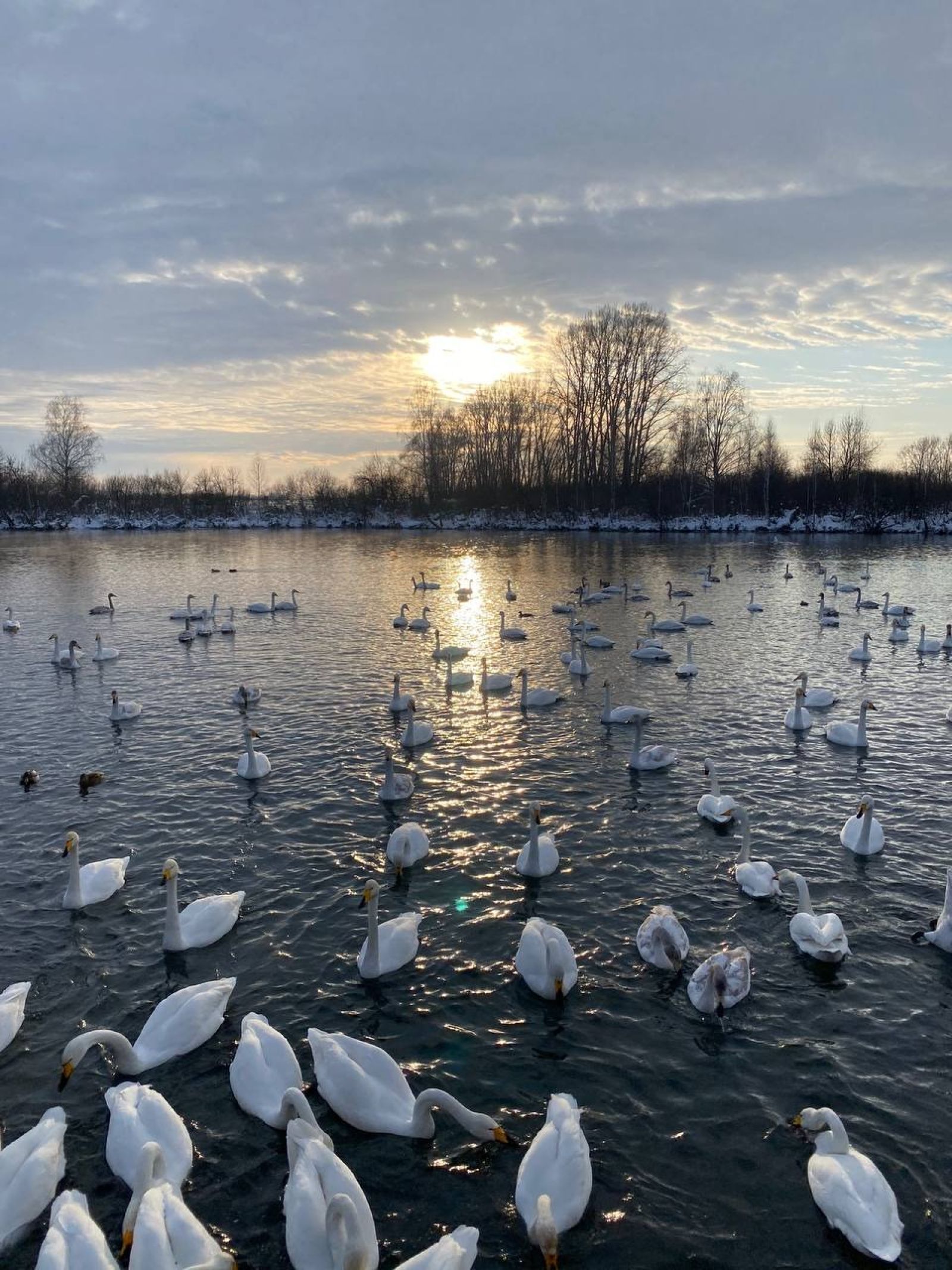 Напомним, что лебеди-разведчики прилетели сюда еще в октябре, а вот основная масса пернатых начала слетаться в начале зимы.
