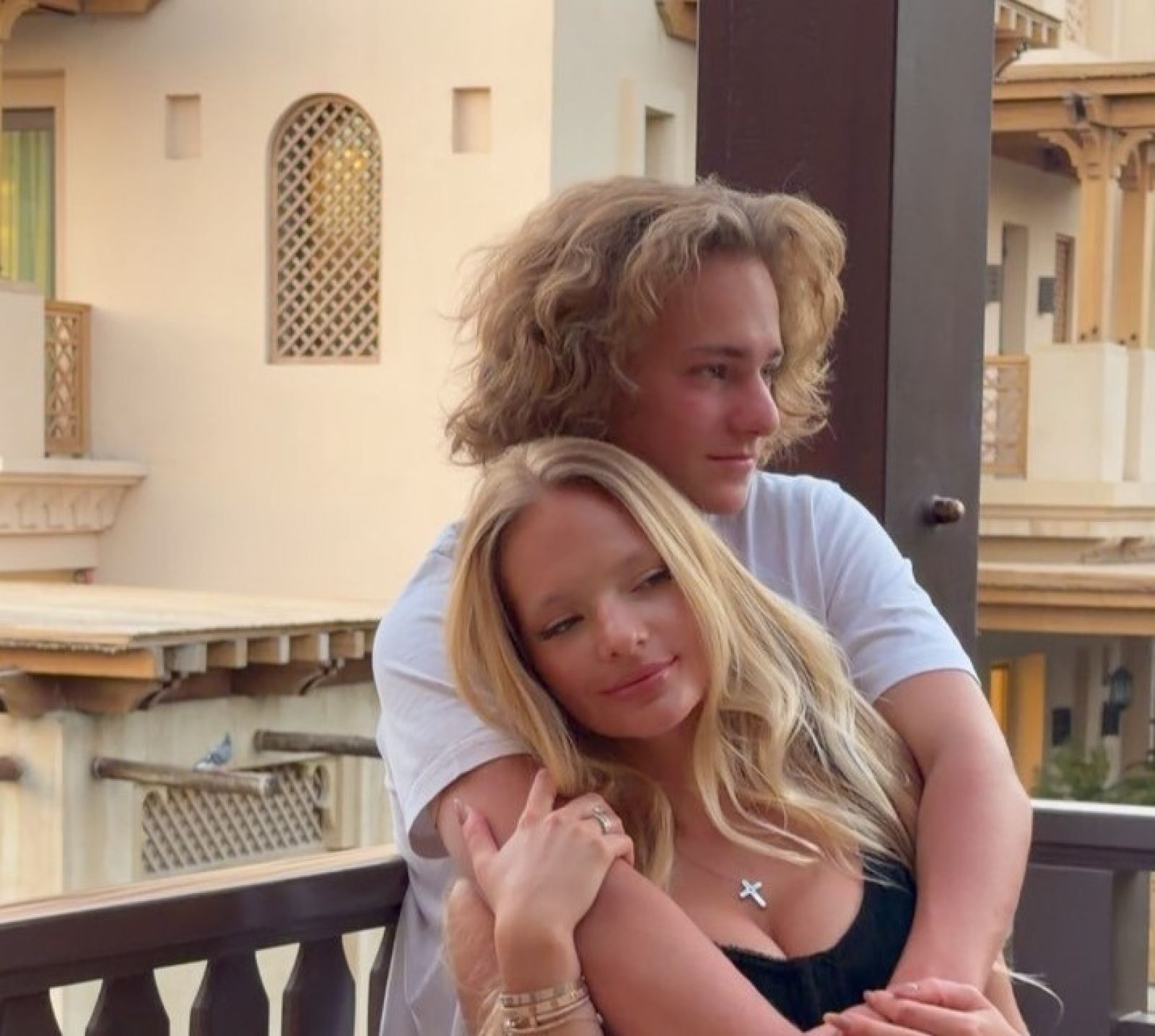 Елизавета Пескова опубликовала редкие фотографии с младшим братом Дени. На снимках 28-летняя дочь пресс-секретаря президента России Дмитрия Пескова позирует в объятиях 16-летнего брата на террасе.