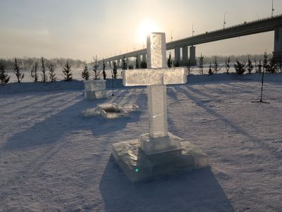 На Оби возле Нового моста подготовили крещенский городок, в котором установили главную иордань города (специальную купель для окунания в холодную воду), а также домики для переодевания.