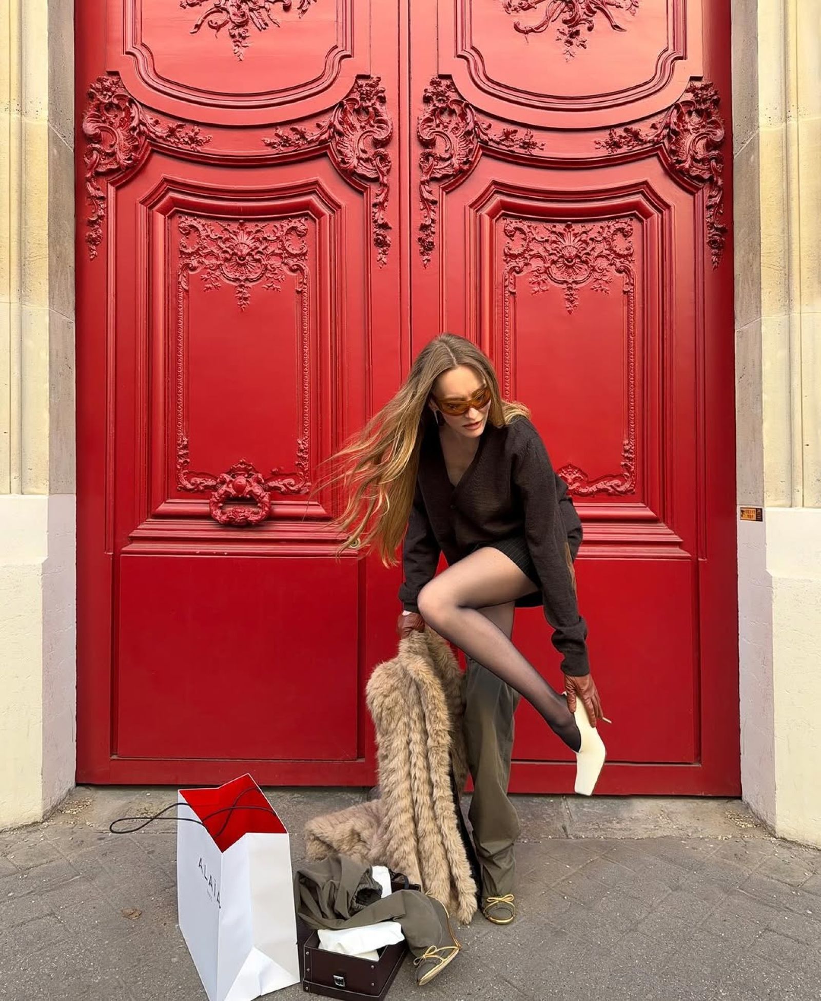 Для съемки 43-летняя жена миллиардера Ивана Стрешинского выбрала образ, который сложно назвать теплым: шуба в зебровую полоску и меховые трусы в тон