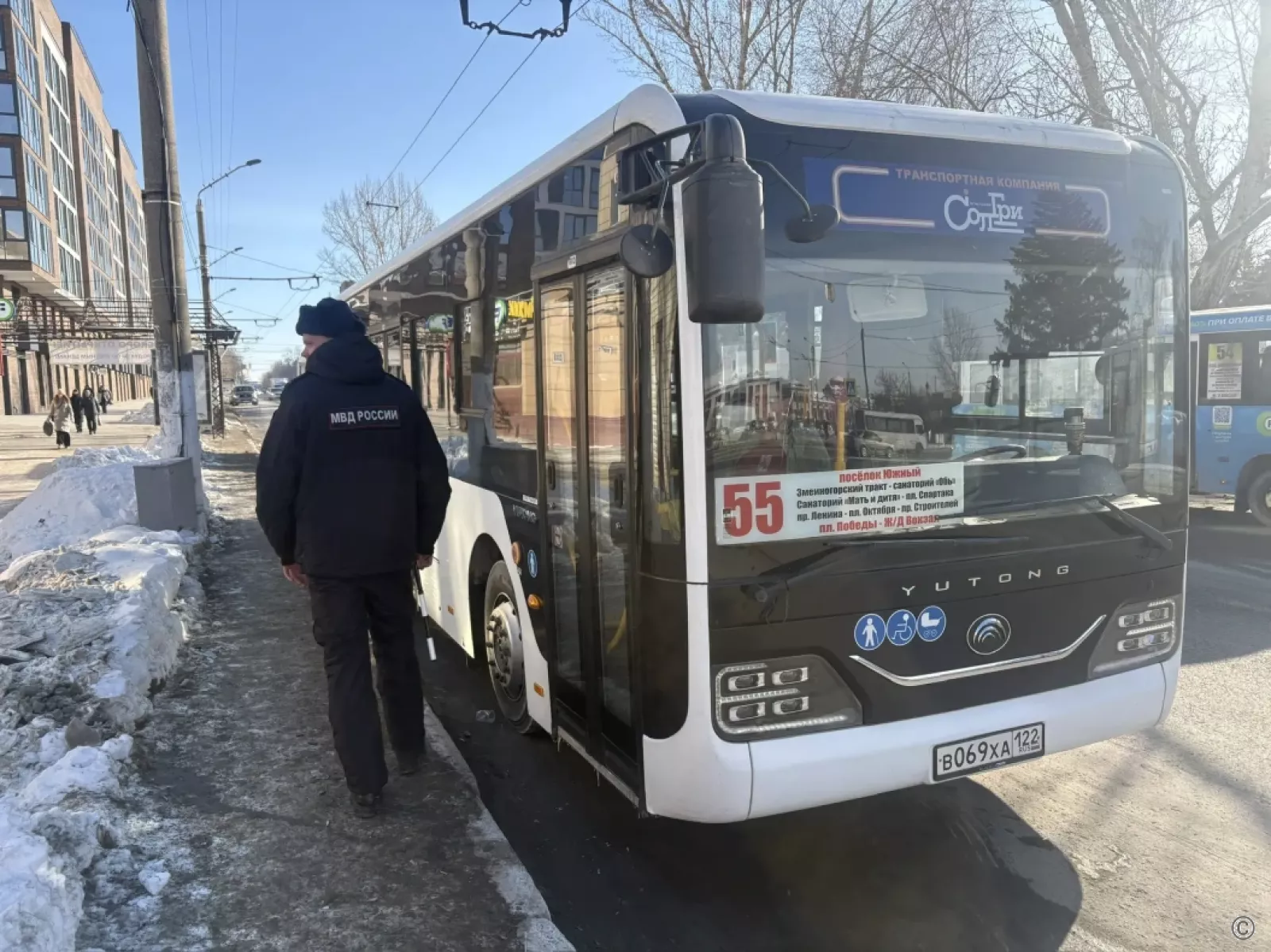 Проводили выездную проверку сотрудники комитета по дорожному хозяйству и транспорту города совместно с сотрудниками Госавтоинспекции. На конечной "Площадь Победы" в ходе рейда осмотрели автобусы № 9, 32, 54, 55 и 108.