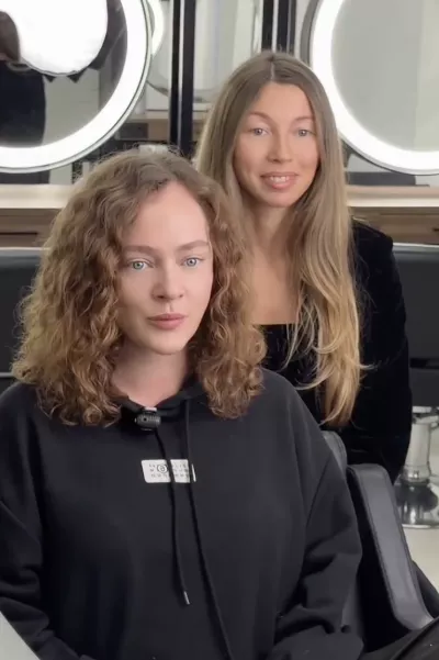 Актриса пришла к известному стилисту Ольге Дементьевой и попросила перекрасить ее волосы. Девушке захотелось более темный оттенок. Дементьева перекрасила ее в холодный оттенок, а также сделала укладку с локонами и боковым пробором.