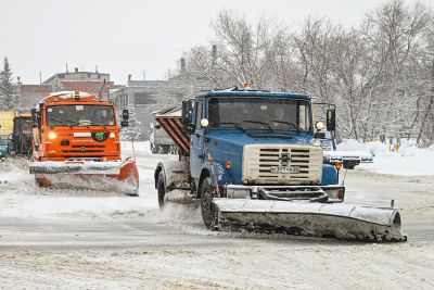 В ночную смену работало 119 единиц техники, днем на уборку вышло около сотни. Дорожники не только вывозят снег, но и посыпают тротуары реагентами