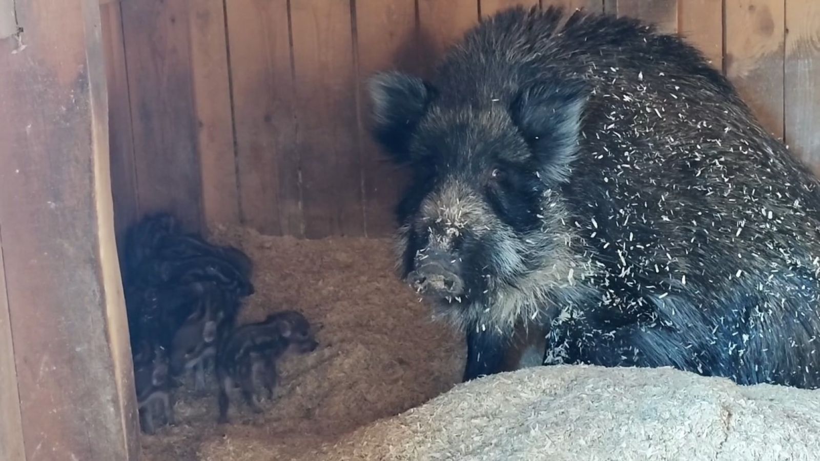 1 апреля на свет появились крошечные полосатые поросята — пока они прячутся в уютном гнезде, которое заботливо устроила Нюра.