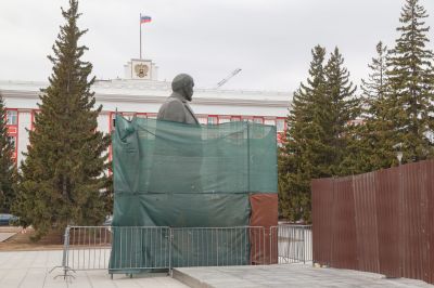 У объекта на площади Советов продолжают работать специалисты, а скульптура вождя революции тем временем "ждет" возвращения на привычное место