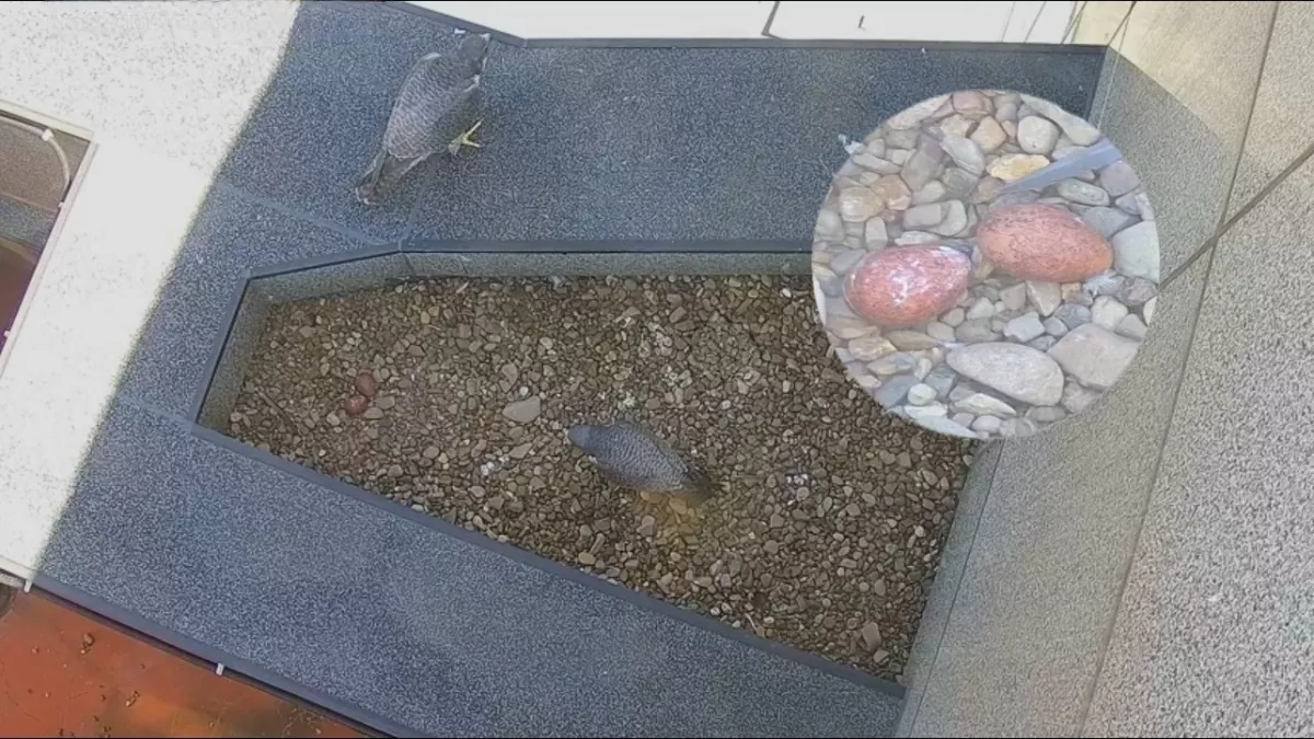 В этом году у сокола новая партнерша, поэтому брачный период затянулся несколько дольше обычного. Как правило, он занимает около 19-21 дня после их возвращения. По прогнозам, первый птенец появится через 35-36 дней после
