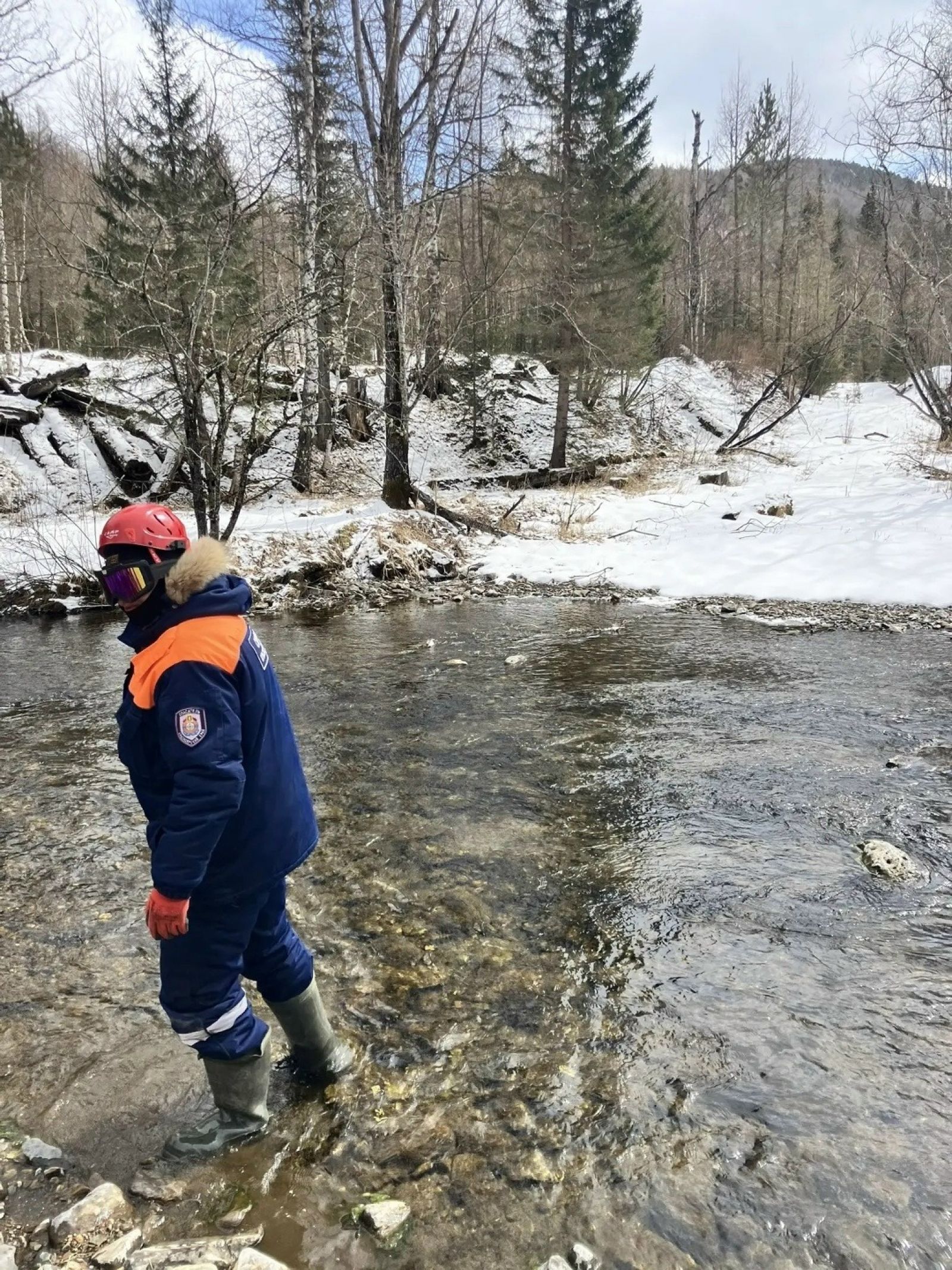 Поисковики выбирались в тайгу для оценки обстановки. На данный момент река Мина в районе пропажи Усольцевых оттаяла – ее русло осмотрели. Также есть участки, где снег практически сошел. Они были обследованы пешими группами.