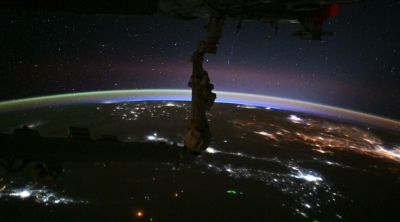 В кадр попали сразу несколько явлений, от атмосферных до космических. Это полярные сияния, грозовые фронты, метеорные вспышки и даже пролеты спутников