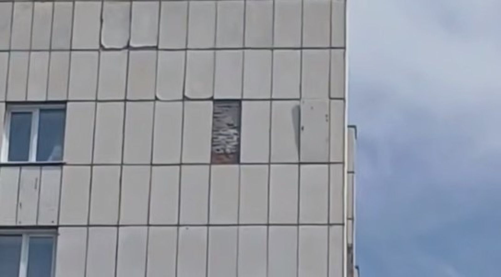 Речь идет о доме на пр. Ленина, 153. По словам очевидцев, ранее часть облицовки уже падала.
