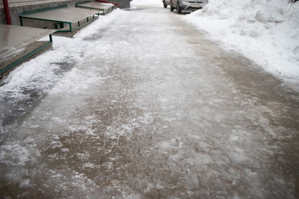 После резких перепадов температуры тротуары и междворовые проходы города превратились в каток или плохо проходимые бугры. "Толк" выяснил, кто должен бороться с гололедом