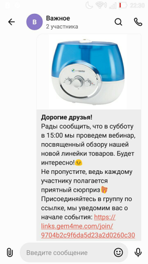 Такой формат общения повышает доверие к фирме и создает эффект вовлеченности в общее дело. А самое приятное, что ивенты можно проводить онлайн – например, в бесплатном приложении Gem4me MarketSpace.