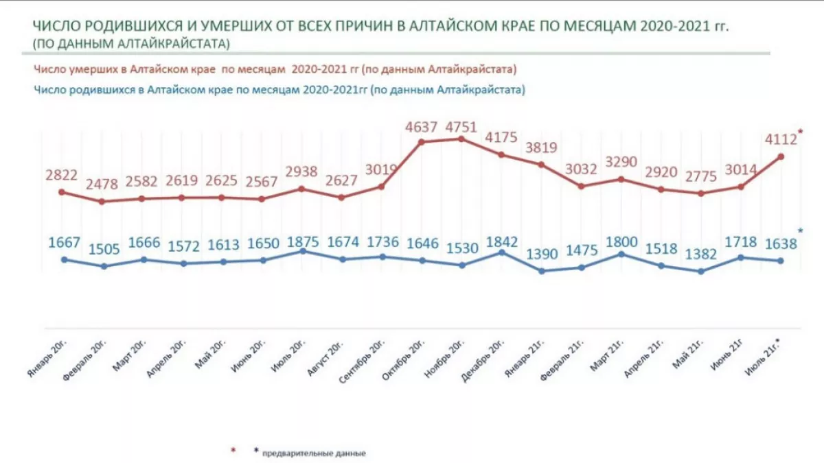 Власти Алтайского края показали график смертности в регионе за последние 12 месяцев на фоне COVID-19 – данные публикует официальный сайт края.