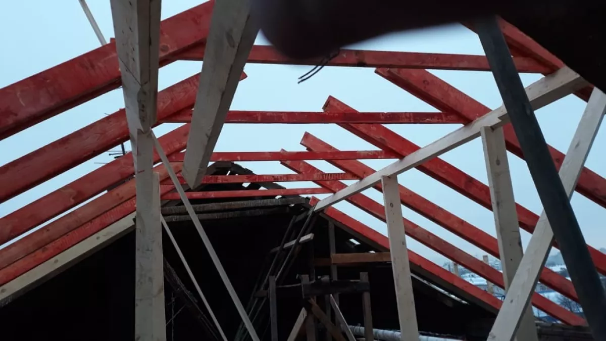 В выходные рабочие завершили демонтировать разрушенную кровлю. Также на место аварии доставили кирпичи и пиломатериалы. Сейчас возводят деревянные конструкции крыши: стропила, слуховые окна и элементы карниза.