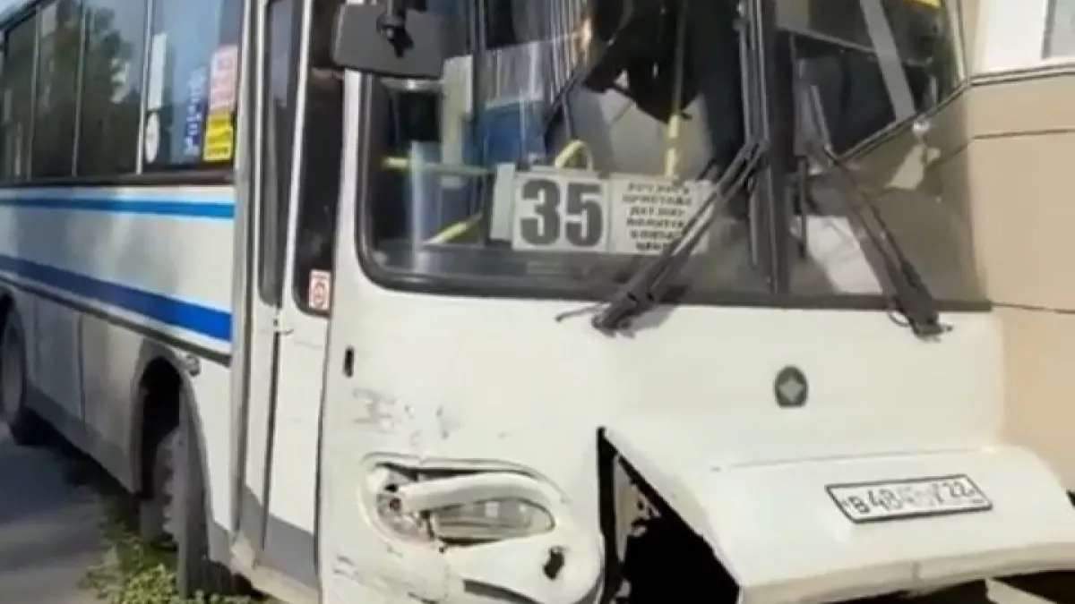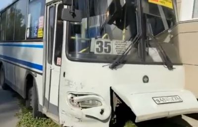 Пассажирский автобус 35 маршрута столкнулся с такси и «влетел» в стену многоэтажного дома в Бийске. Об этом сообщает паблик «ЧП Бийск».