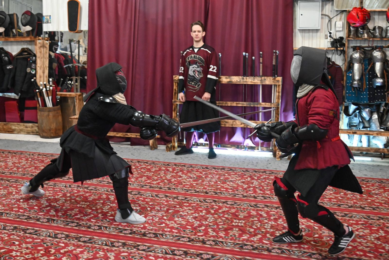 Это был вызов – как для нас, так и для тренера Владислава Пузырева. Нам за несколько тренировок предстояло научиться правильно держать в руках меч, овладеть базовой техникой (хотя бы немножко), освоиться в специальном снаряжении и преодолеть страх ударить другого человека. А нашему тренеру предстояло всему этому нас научить.