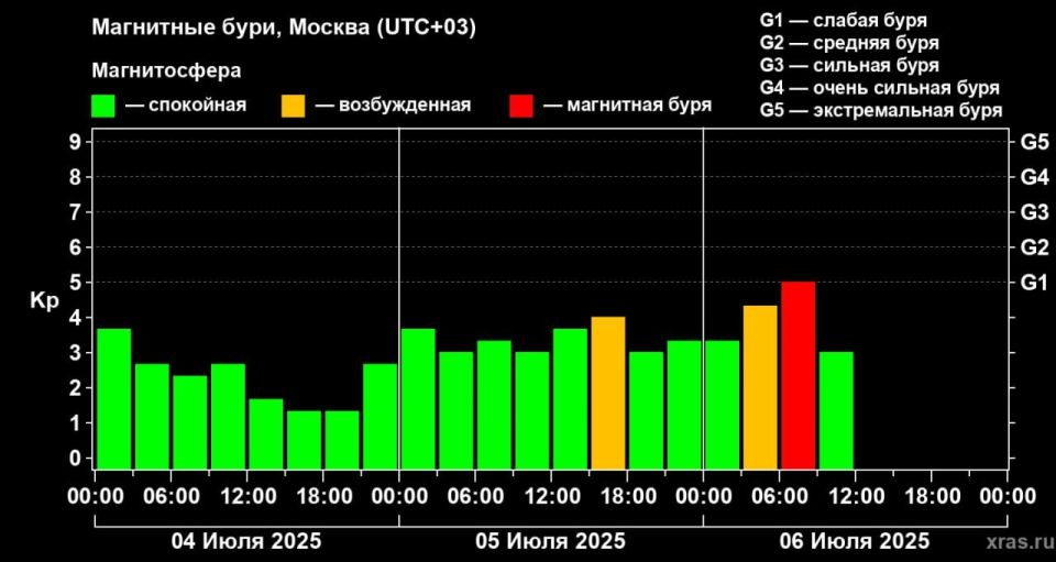 По прогнозам, в ближайшие дни геомагнитная обстановка останется спокойной. Однако если один из крупных протуберанцев на Солнце направится к Земле, ситуация может резко измениться.