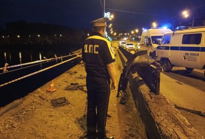 Молодой водитель Lexus на огромной скорости въехал на подъем, а затем пытался затормозить на спуске, но не успел — авто влетело в перила моста