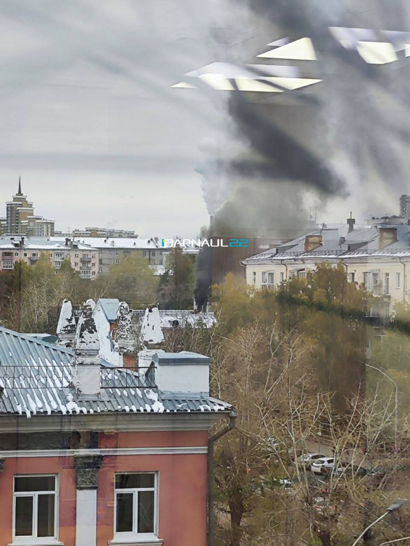 Судя по кадрам с места происшествия, от крыши здания на проспекте Ленина поднимается столб черного дыма. Причины пожара выясняются