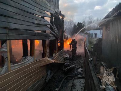 "В результате пожара поврежден двухэтажный дом, деревянная беседка, стена бани, стена гаража, а также сайдинг соседнего дома", – говорится в сообщении МЧС.