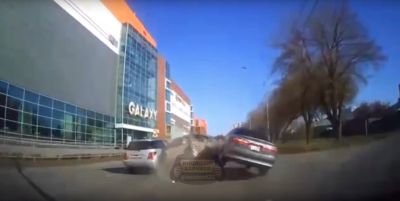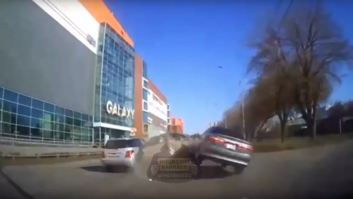 15 октября в Барнауле у ТРЦ Galaxy произошло необычное ДТП: в авто одновременно въехали с двух сторон. Видео публикует сообщество "Инцидент Барнаул" в соцсети "Вконтакте".