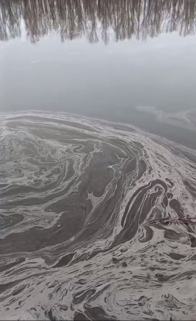 В комментариях уточняют, что на кадрах место у реки возле школы в Сорокино, куда "приплыла эта жижа".