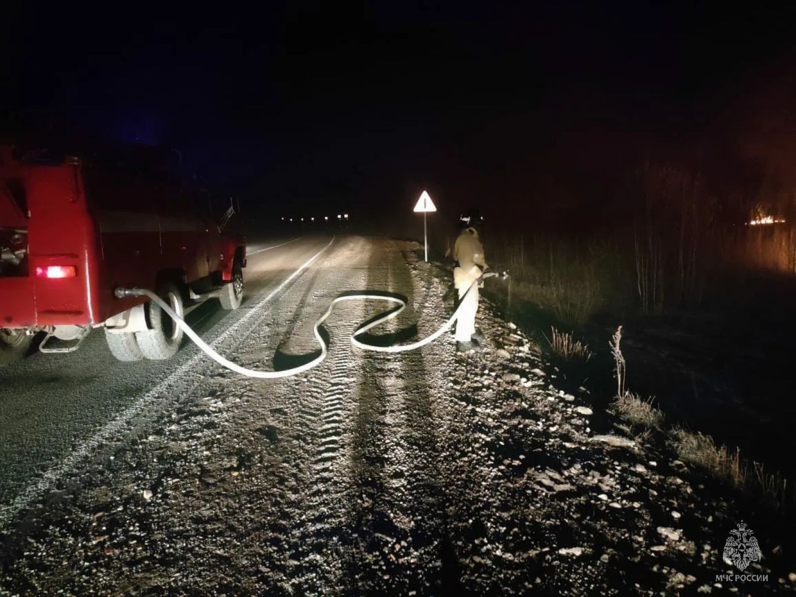 В МЧС сообщили, что на место направлены расчеты — бойцы взяли под контроль обстановку. Угрозы населенным пунктам и другим объектам нет