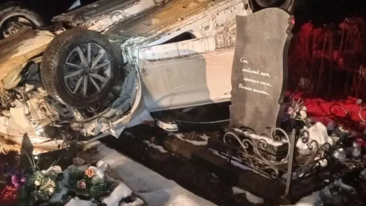 В Ленобласти ночью 30 ноября произошло необычное ДТП. Легковушка съехала с дороги, влетела на кладбище и перевернулась на крышу на могиле, сообщается в telegram-канале ГКУ "Леноблпожспаса".