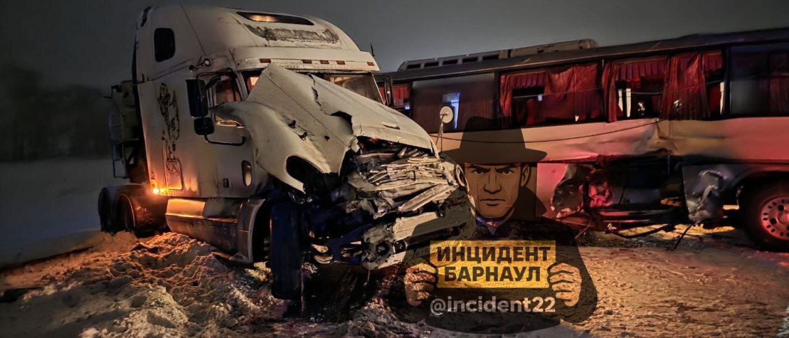 Авария произошла в 20.35 в четверг, 4 декабря, на 238 км Чуйского тракта. По предварительной информации, 40-летний водитель фуры Freightliner ехал со стороны Бийска в сторону Барнаула. Мужчина не выдержал безопасную дистанцию и столкнулся с впереди идущим автобусом Kia. После их аварии в автобус врезался еще один автомобил — Honda Stepwgn.