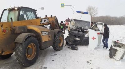 UPD.: авария произошла в 10.20 на 19 км трассы Юдиха – Тюменцево – Баево – Верх-Суетка – Знаменка – Александровка – Славгород. Предварительно, 60-летний водитель за рулем трактора К-700 при проведении дорожных работ задним ходом врезался в машину скорой помощи под управлением 39-летнего мужчины. Автомобиль медиков ехал в сторону села Крутишка.