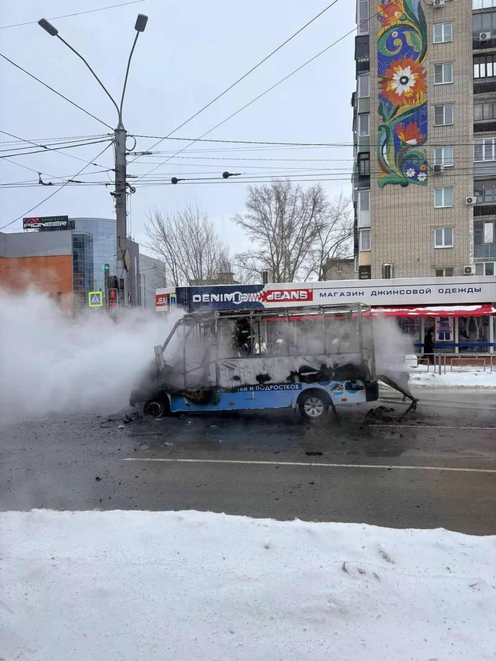 Утром в понедельник, 22 декабря, в центре Барнаула загорелся автобус маршрута № 54. Пресс-служба ГУ МЧС России по Алтайскому краю и жители города опубликовали кадры с места происшествия.