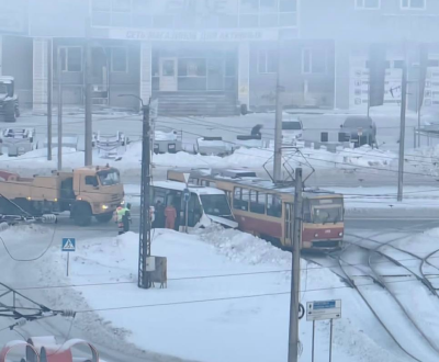Маршрутный автобус столкнулся с трамваем на пересечении улиц Попова и Власихинская. Кадр с места происшествия опубликовали в telegram-канале "В курсе 22".