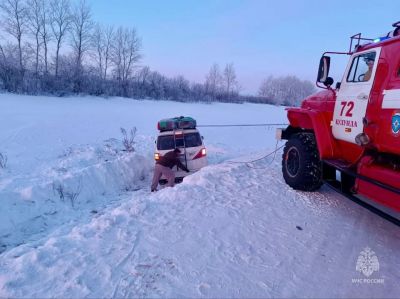 Никто не пострадал, однако в условиях морозов гражданам Монголии потребовалась экстренная помощь — авто вернули на дорогу сотрудники МЧС