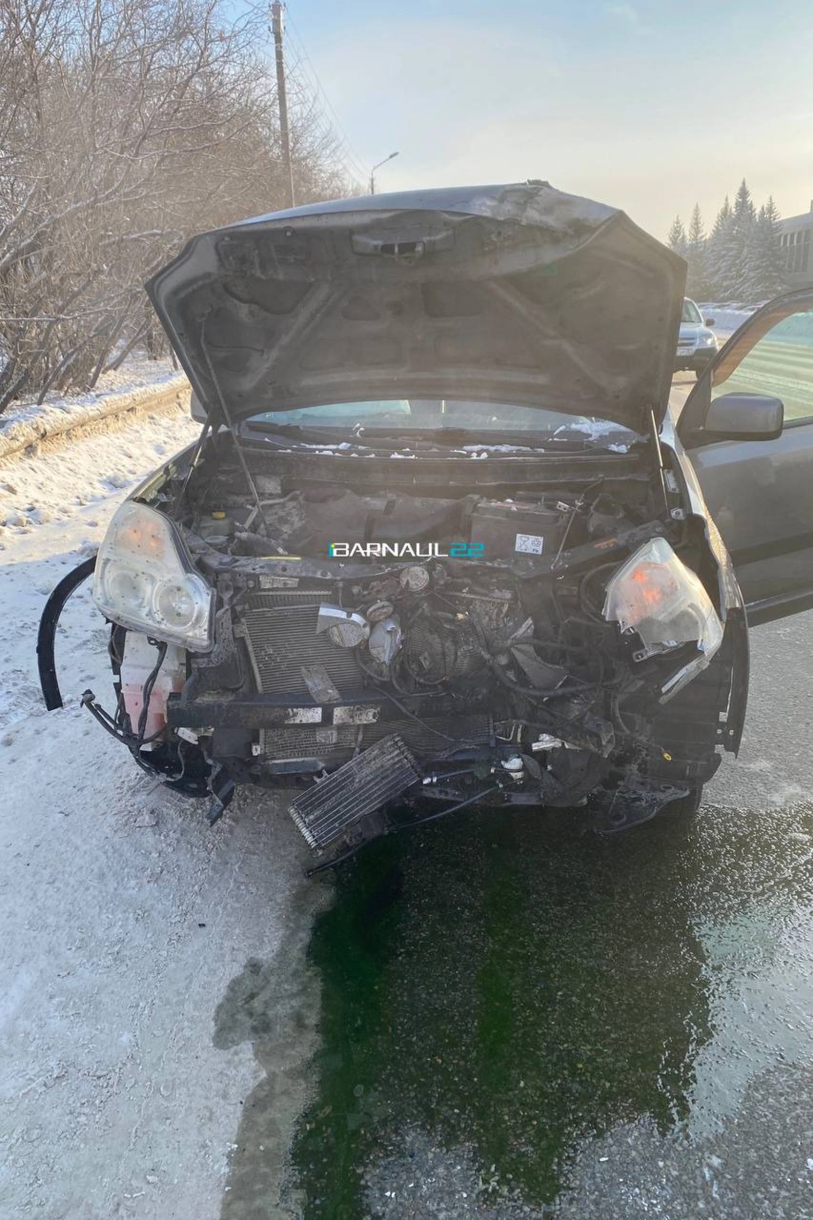 По словам очевидца, он на своем авто успел увернуться, но рядом ехавшему Nissan X-Trail повезло меньше — его переднюю часть сильно помяло