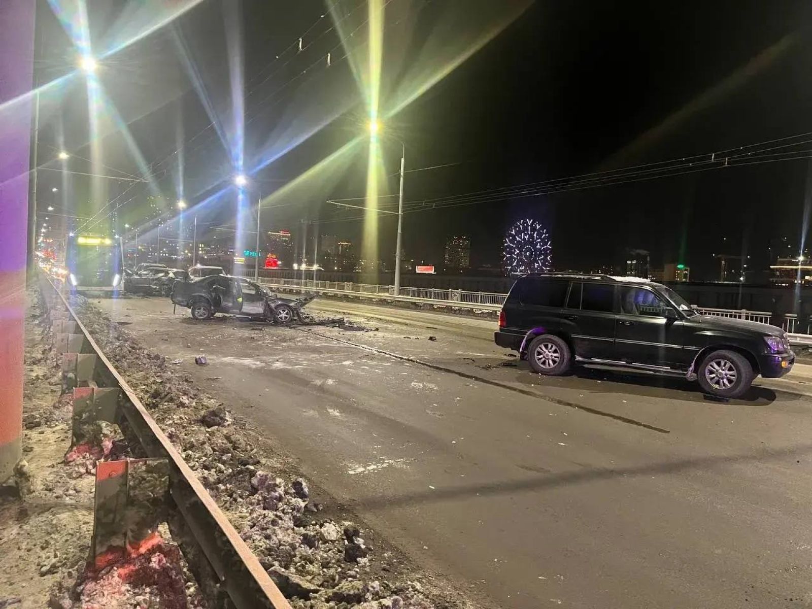 После удара Nissan потерял управление и оказался на полосе встречного движения, где последовала серия столкновений с другими транспортными средствами: Lexus 470 под управлением 41-летнего мужчины, Toyota Sprinter с 25-летним водителем за рулем, автобусом НефАЗ (44-летний водитель), Land Rover, которым управляла 40-летняя женщина, и Lexus G460 с 67-летним водителем.