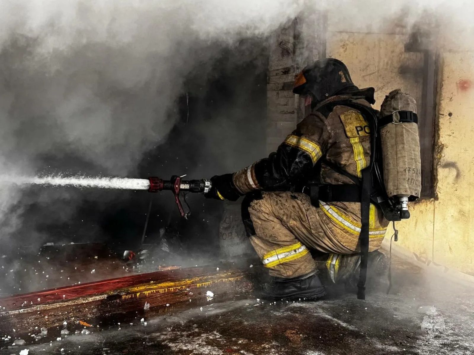 К прибытию первых пожарных подразделений из гаражного бокса валил дым. Тушили возгорание 24 специалиста на пяти единицах техники